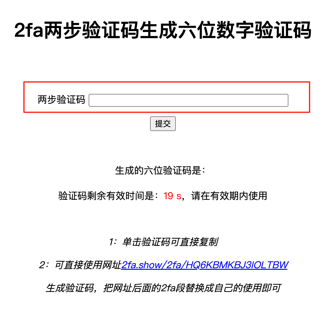 获取验证码,点击链接获取:https://2fa.show/